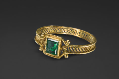 Sormus kultaa ja smaragdi. Omistaja Serlachiuksen taidesäätiö.