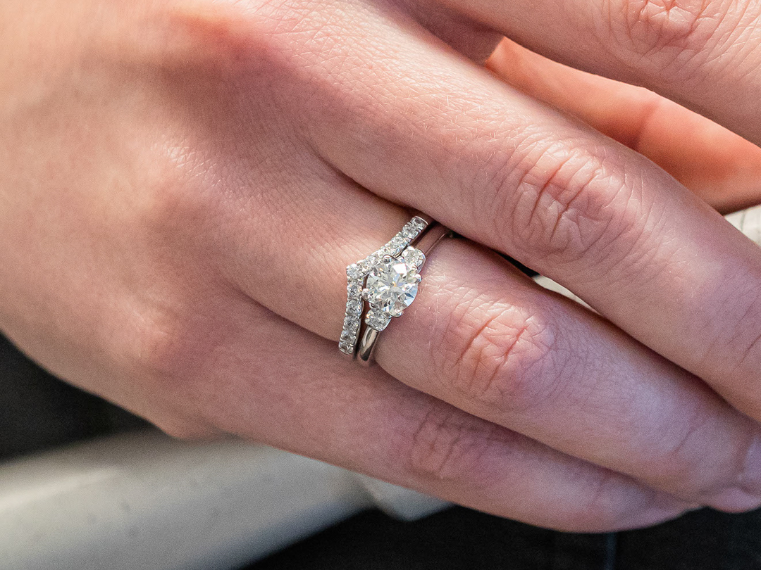 Kultasepät Andreasenin vihkisormuksista moni sormusmalli on suunniteltu istumaan kihlasormuksen viereen muodostaen yhdessä saumattoman kokonaisuuden.