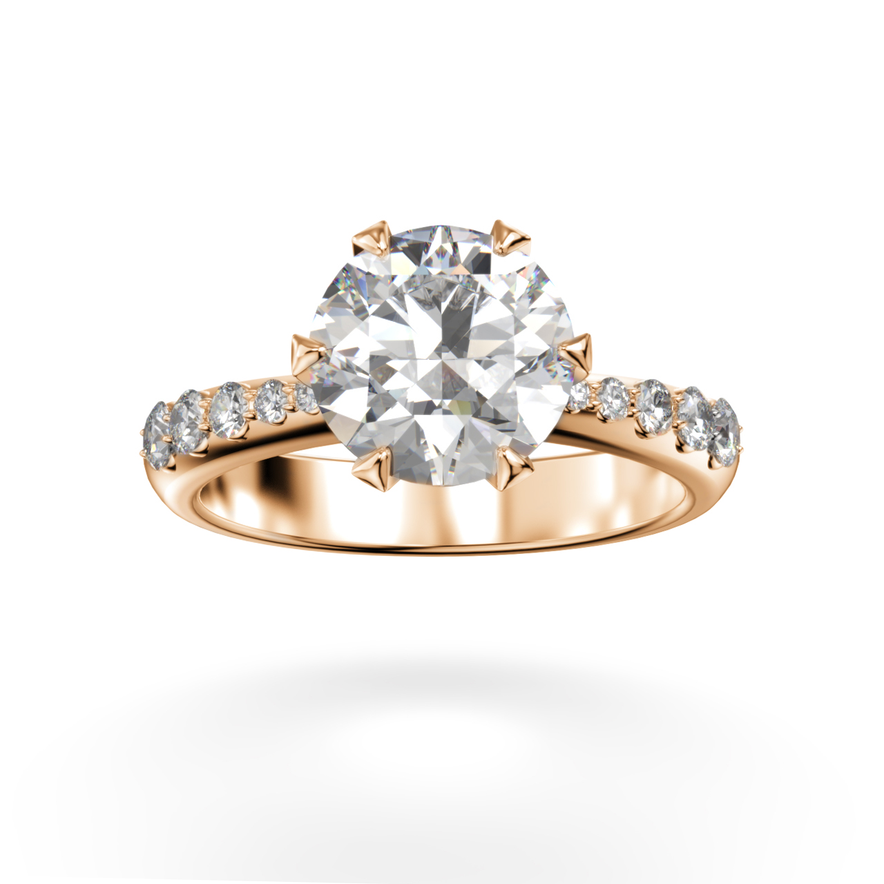 Adalmiina-malliston sormukset tarjoavat modernin ja säihkyvän tulkinnan klassisesta solitaire-sormuksesta. Jokainen sormus rakentuu näyttävän keskuskiven ympärille, mutta loisto ei lopu siihen – timantein koristeltu runko jatkaa säihkettä sormuksen ympäri kuin tähtivyö, joka kehystää korun kauneimman pisteen. Lopputuloksena on elegantti ja katseenvangitseva kokonaisuus, joka huokuu juhlan tuntua jokaisessa yksityiskohdassaan.