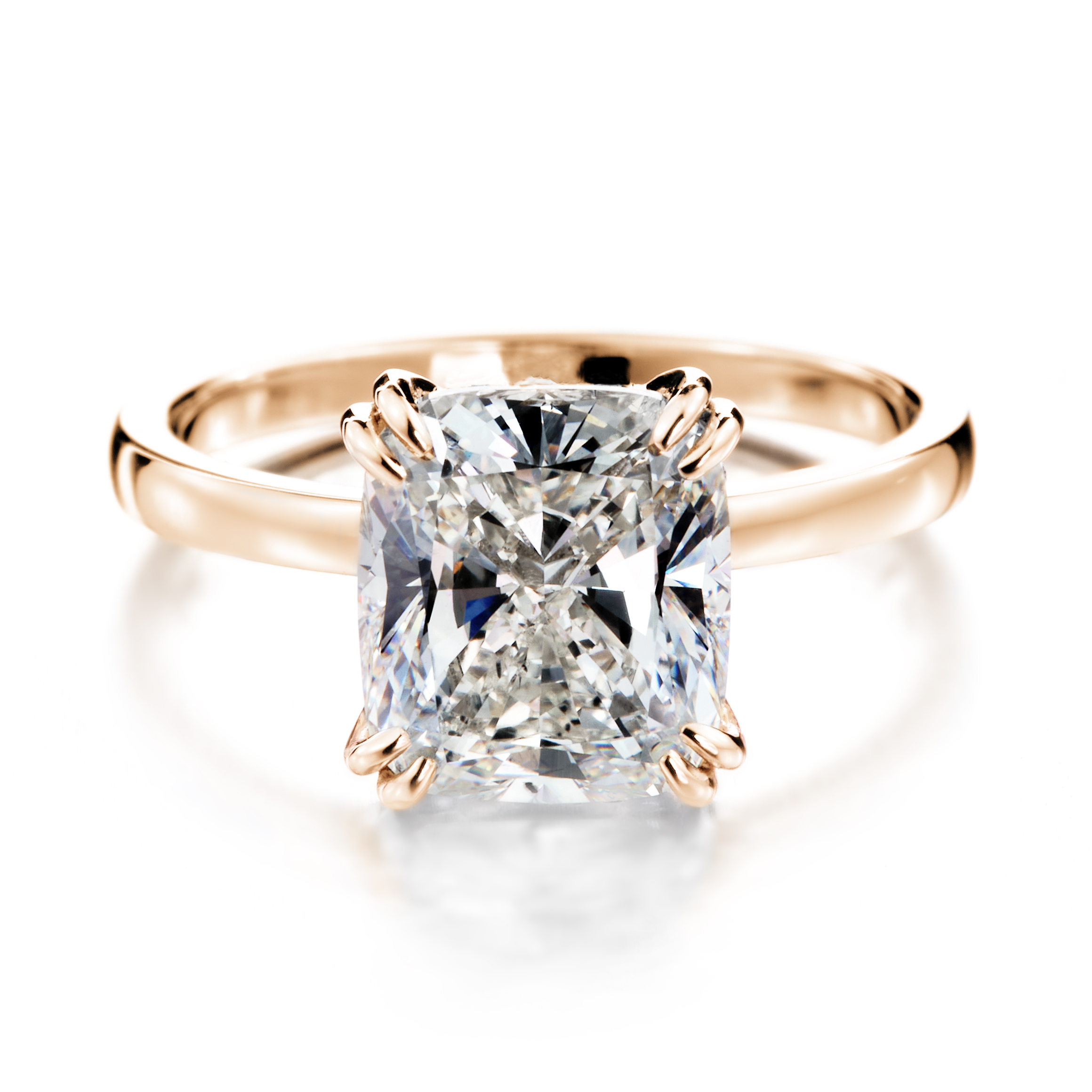 Tämä yksikivinen keltakultainen Classic-vihkisormus, jossa komeilee iso cushion-hiottu timantti, heijastaa menneiden aikojen loistoa ja nykyhetken tyylikkyyttä. Cushion-hionta, tunnettu pehmeistä kulmistaan ja syvästä valon kimmellyksestään, tuo esiin timantin moniulotteisen loiston, muistuttaen ajan patinoimista jalokivistä, joissa jokainen säde ja heijastus kertoo tarinaa ajattomasta eleganssista.