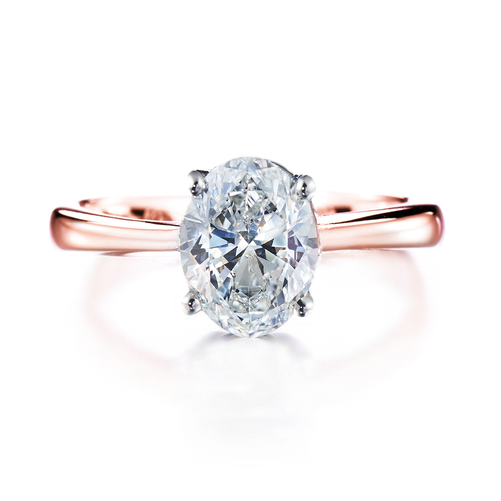 Punakultainen Classic-vihkisormus valkokultaan istutetulla ovaalihiotulla timantilla: