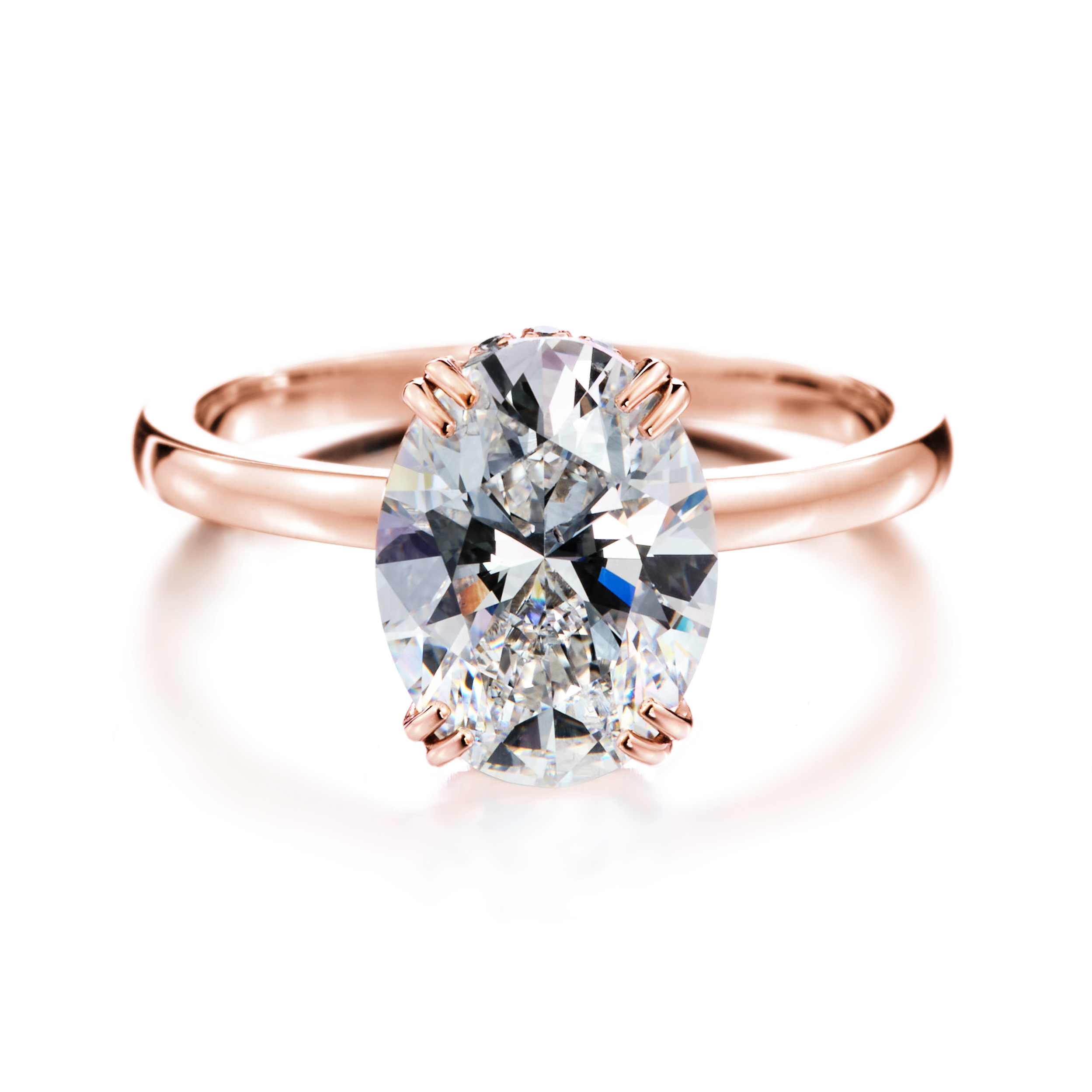 Punakultainen Elli-vihkisormus ovaalihiotulla hidden halo -timantilla: