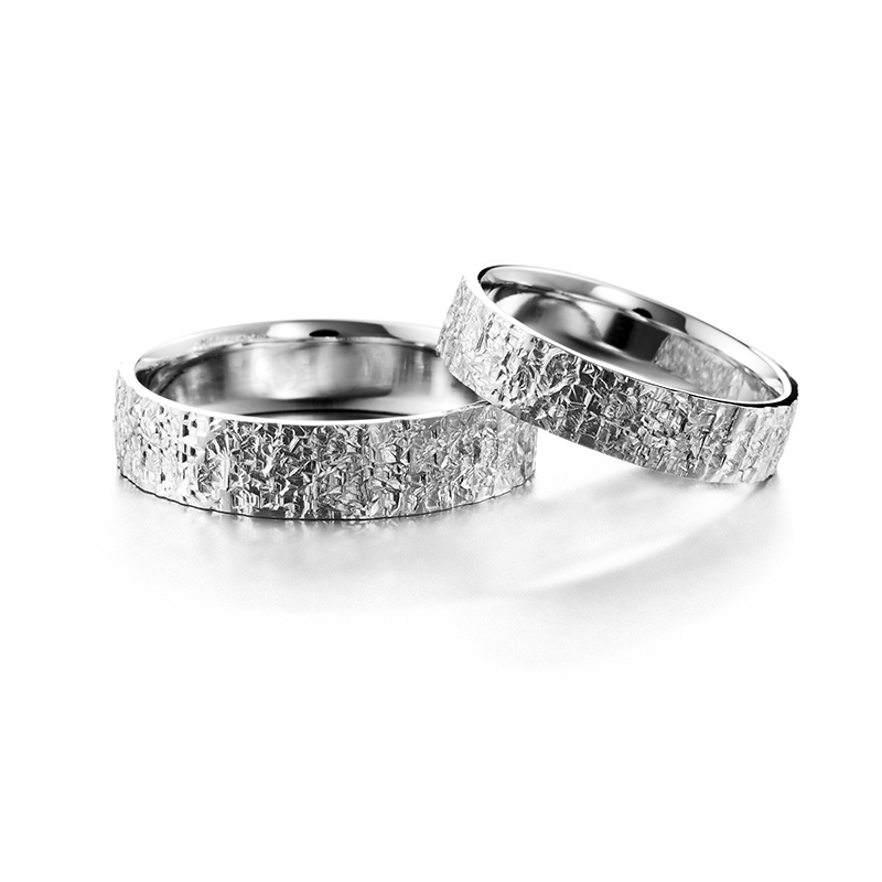 Valkokultainen Hohka-kihlasormus on kuin talviaamun hohtava valo, joka piirtää jäähän syviä ja moniulotteisia kuvioita. Sen käsintaottu pinta vangitsee ympäristönsä heijastukset ja saa aikaan hillityn, mutta lumoavan kiillon. Jokainen sormus on omanlaisensa, sillä taonnassa syntyvät muodot ja rytmit ovat yhtä ainutkertaisia kuin sen kantajansa elämänpolku.