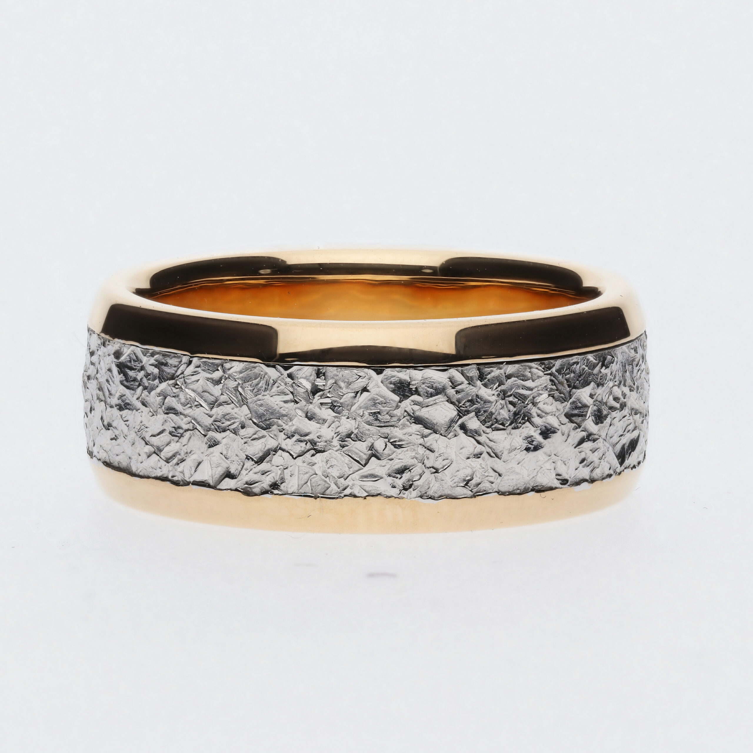 Hohka-taottu sormus keltakultaisilla reunoilla ja sisäosalla