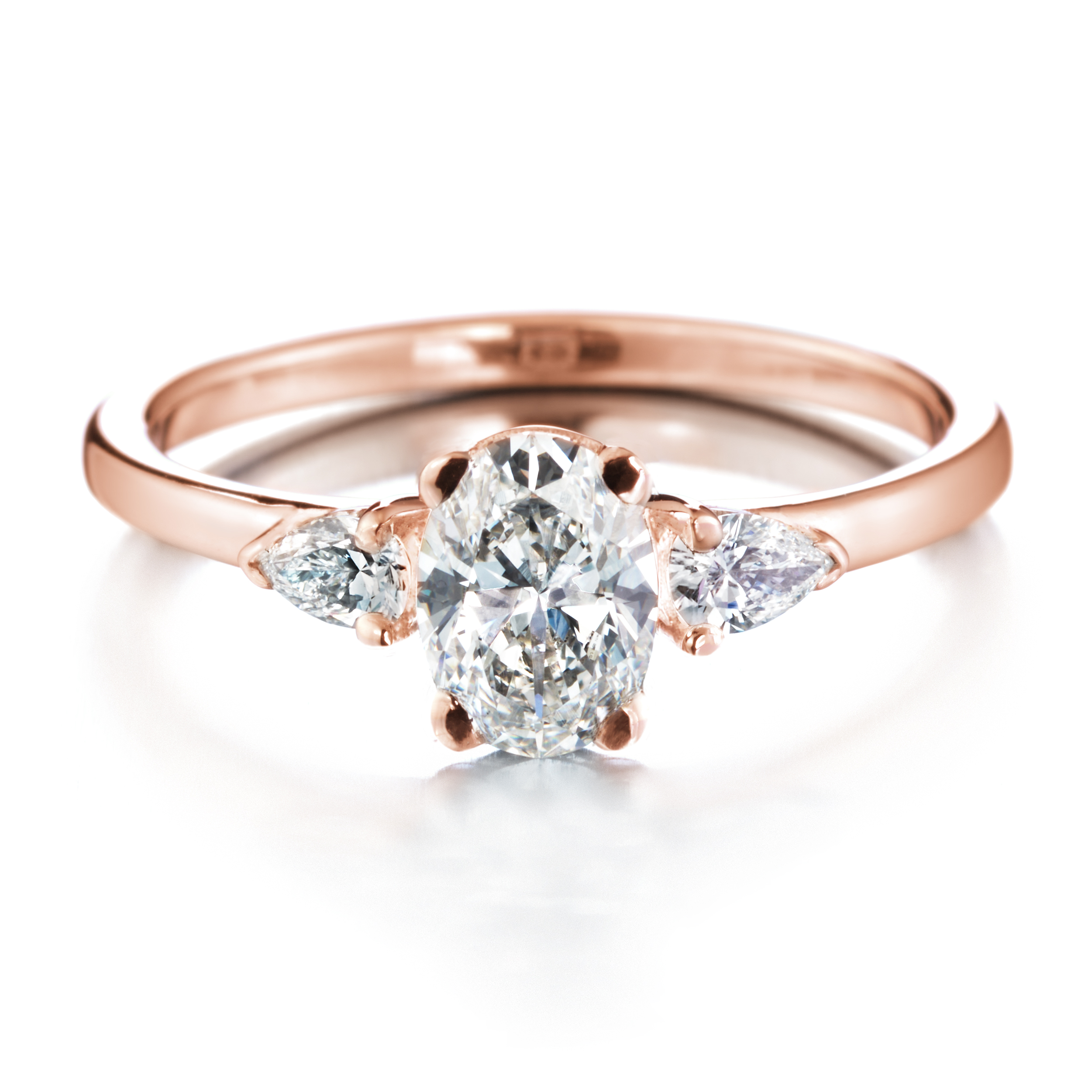 Punakultainen Idea-sormus yhdistää ovaalihiotun keskuskiven ja pisaratimanttien herkän rytmin romanttiseen lämpöön. Pisaroiden kaartuva linja myötäilee sormuksen muotoa sulavasti, ja punakullan pehmeä hehku antaa säihkeelle romanttista syvyyttä – kuin valoa suoraan sydämestä.