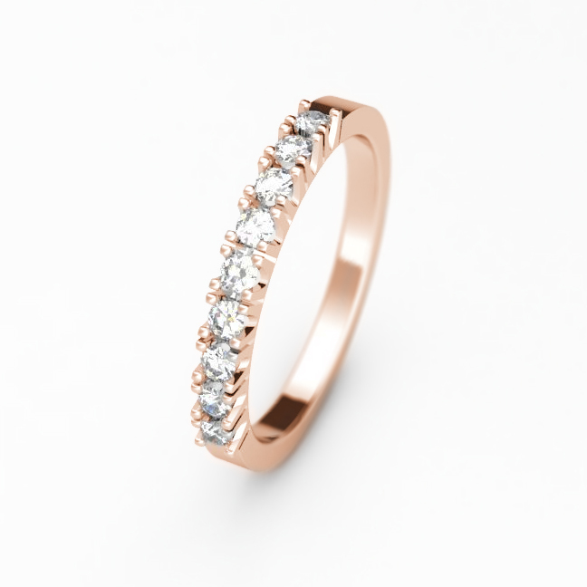 Punakultainen Ikuisuus-rivisormus säteilee rauhallista lämpöä ja hienovaraista loistoa. Timantit istuvat tiheästi ja kimmeltävät kevyesti, kuin hiljainen rytmi, joka kulkee sormuksen pintaa pitkin. Punakullan ruusuinen sävy syventää säihkeen tunnelmaa – se on intiimi ja romanttinen.Tämä sormus on sinulle, joka haluat kantaa mukanaan tunnetta, joka ei sammu – vaan elää valona arjen keskellä.