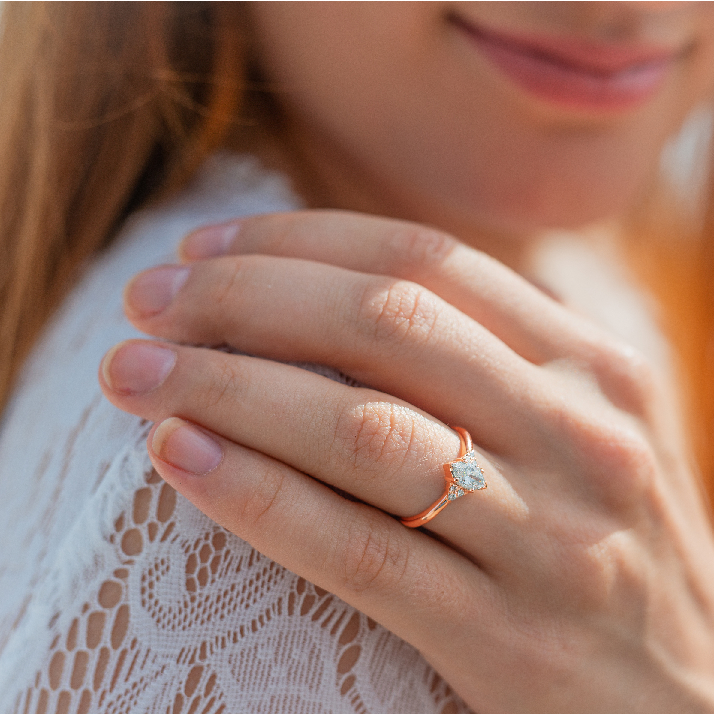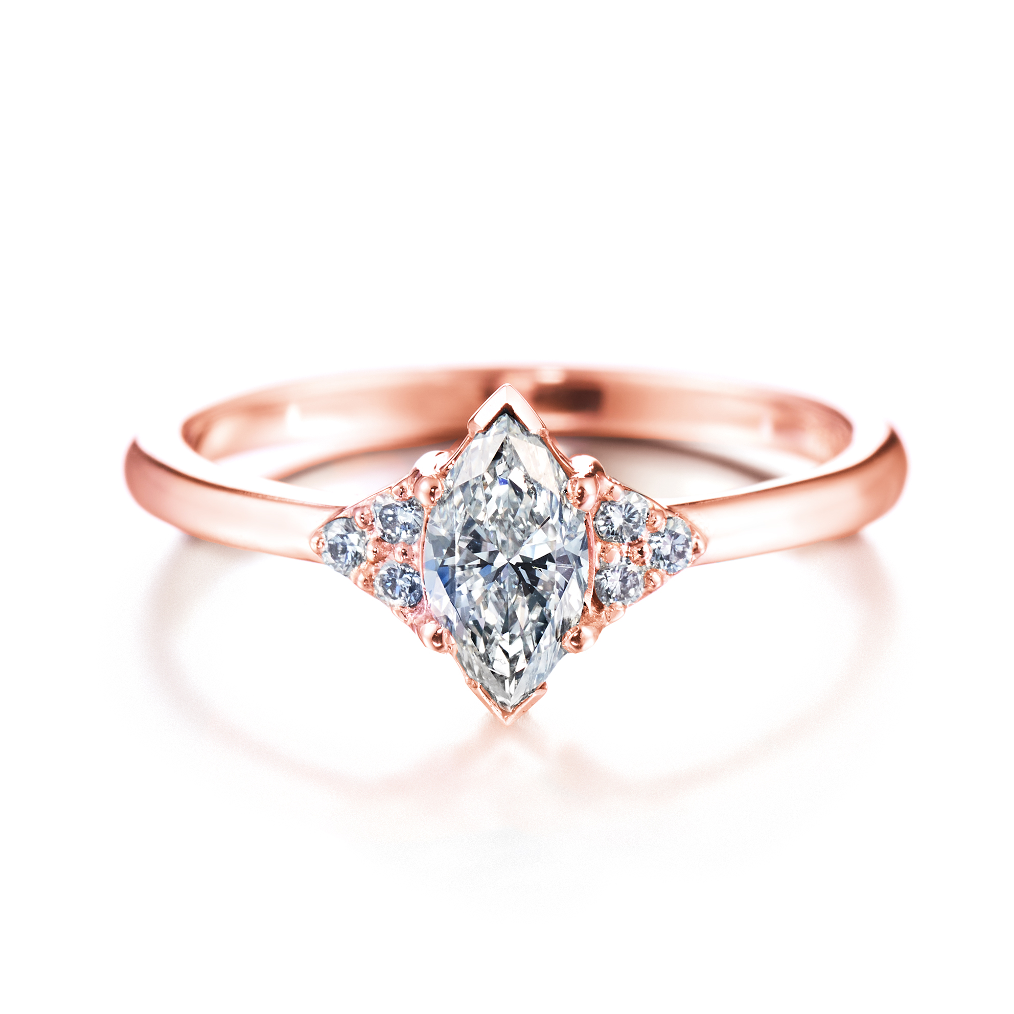 Punakultainen Isla-sormus markiisihiotulla timantilla ja 6 sivutimantilla: