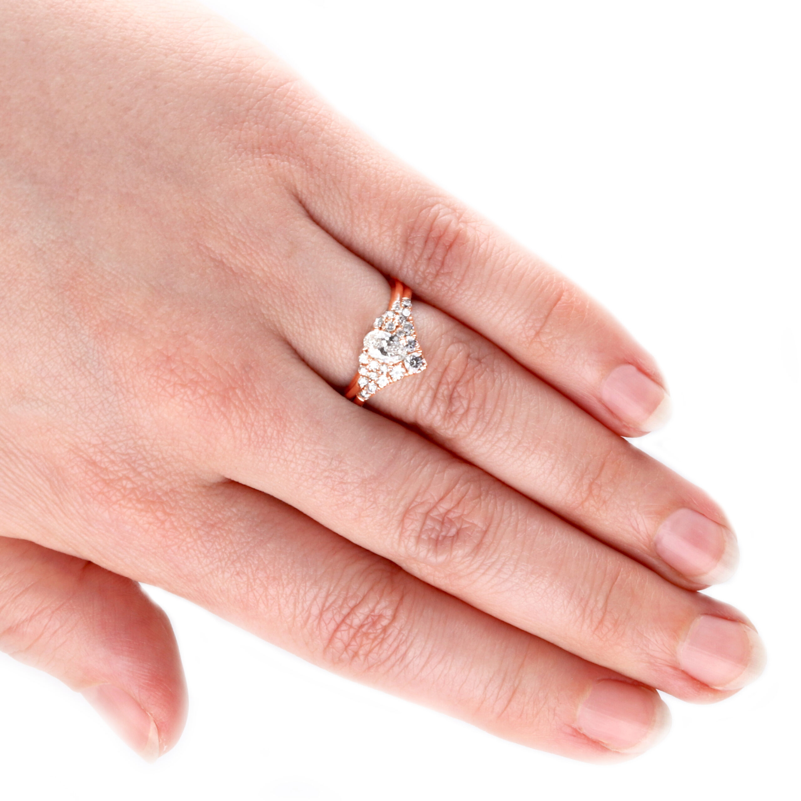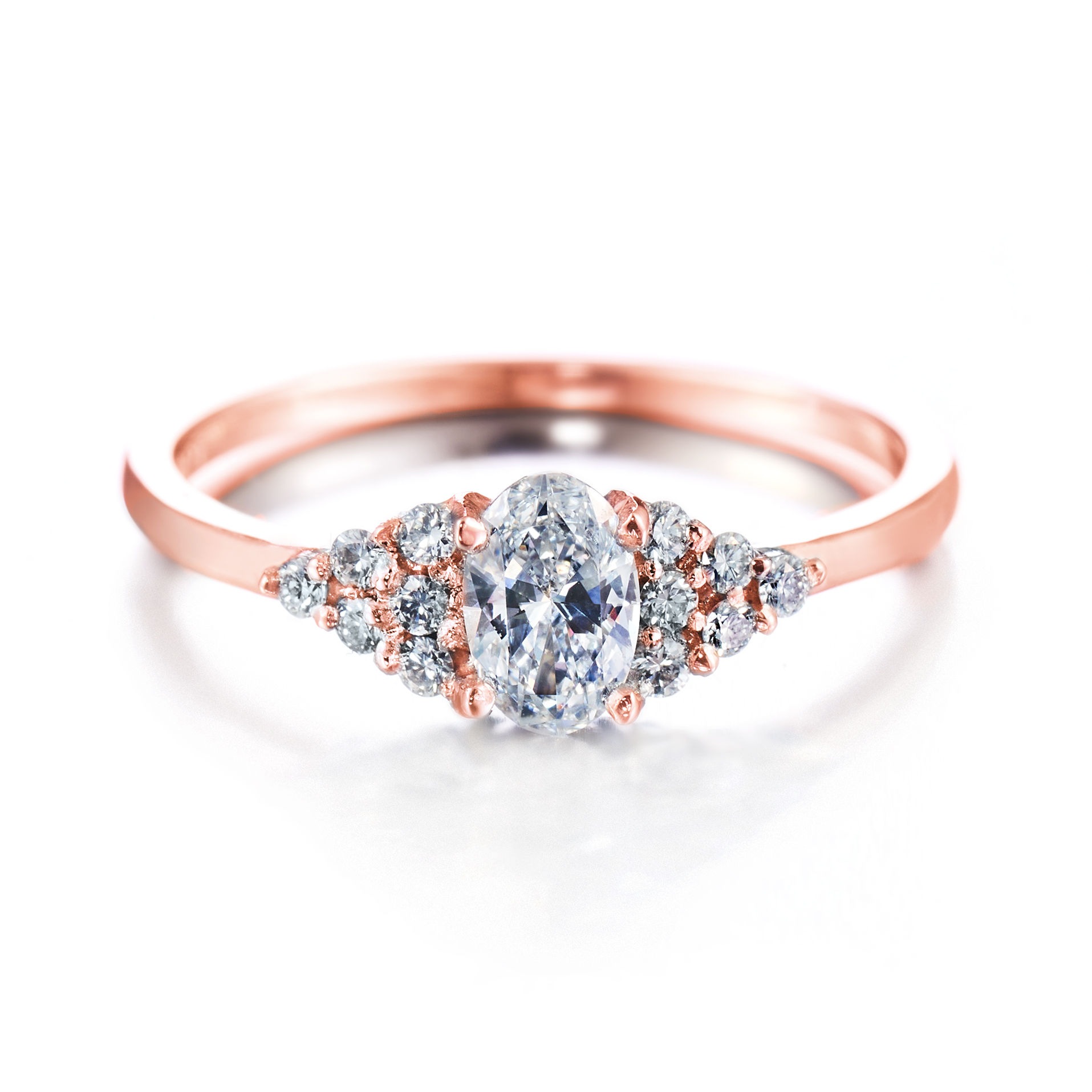 Punakultainen Isla-sormus ovaalitimantilla ja 12 sivutimantilla: