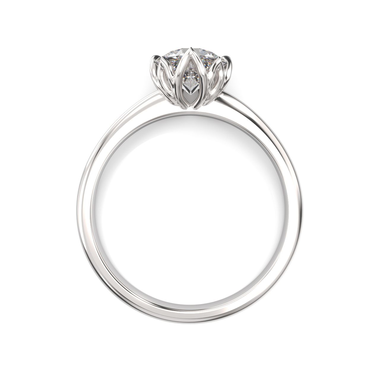 Valkokultainen Liljaana-timanttisormus huokuu herkkää selkeyttä – kuin raikas kukka, joka on juuri avautunut aamuauringon valossa. Keskellä loistava timantti istuu kuin kukinnon sydän, ja terälehtiä muistuttava kruunu nostaa sen lempeästi esiin. Valkokullan viileä hohde tuo esiin timantin kirkkauden ja antaa koko sormukselle modernin, ilmavan kehyksen.