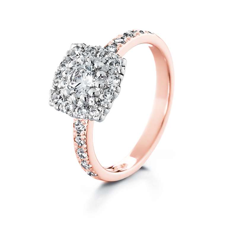 Kuin hiipuvan talviauringon hehku jääkiteissä, valo herättää tämän kauniisti geometrisen Lumivuokko-halosormuksen henkiin. Sen romanttisen punakultainen runko ja neliönmallinen valkokultahalo ympäröivät keskitimantttia, joka loistaa kuin jääkiteisiin osuva iltaruskon valo, kuvastaen luonnon hienostunutta kauneutta. Runkoon istutetut timantit viimeistelevät illan viimeisen hehkun valon sirotessa timanteista henkeäsalpaavan kauniisti. Tämä käsityön taidonnäyte yhdistää luonnon viehkeyden ja kultasepän ammattitaidon, luoden symbolin ikuista rakkautta varten.