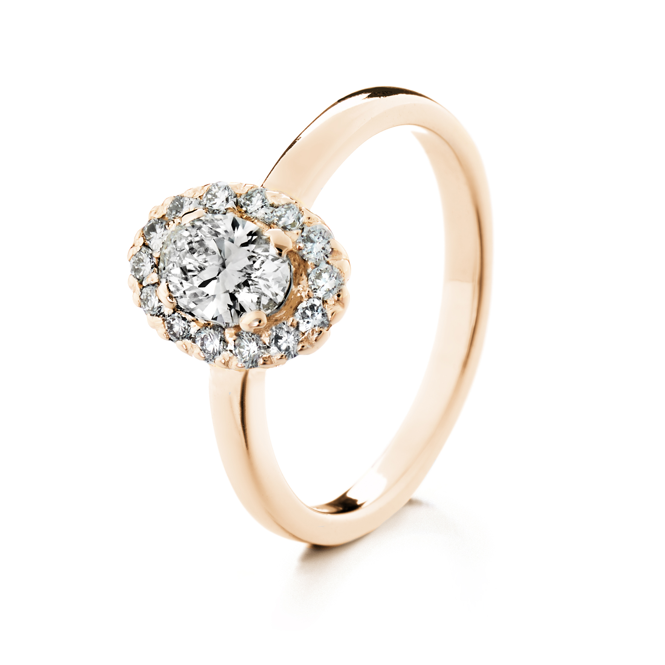 Lumivuokko-mallisto on kuin luonnon oma mestariteos, jossa keskitimantin ympärillä olevat hienostuneesti asetellut pienemmät timantit luovat silmiähivelevän halo-ilmiön. Tämän ympäröivän valokehän ansiosta ovaalihiottu keskitimantti hehkuu entistäkin intensiivisemmin, kuin se olisi sytytetty valolla itse timanttien sydämistä. Keskitimantin säihkyvä loisto korostuu halo-efektin ansiosta, mikä lisää sen hohdetta ja glamouria.