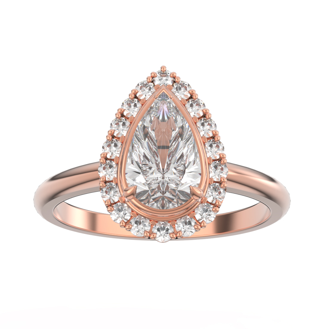 Punakultainen Lumivuokko-halosormus pisarahiotulla timantilla