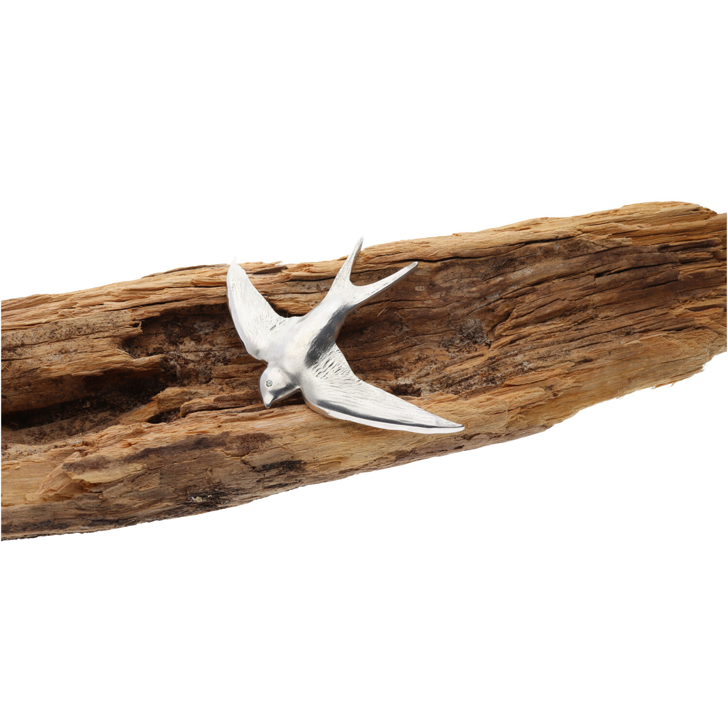 Valmistimme asiakkaalle tilauksesta uniikin lintuaiheisen rintaneulan hopeasta. Linnun silmän kohdalla on yksi kivi-istutus.