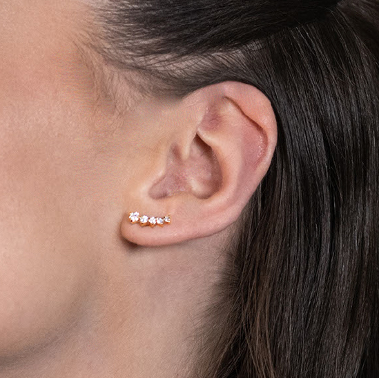 Kultasepät Andreasenin Viehko-timanttikorvakorut ovat näyttävät korvakorut lempikoruiksesi niin arkeen kuin juhlaan. Siroissa korvakoruissa säteilee kaunis asteittain suureneva kaareva rivistö brilliantteja timantteja. Kaareva korvakoru asettuu kauniisti korvanlehdelle.